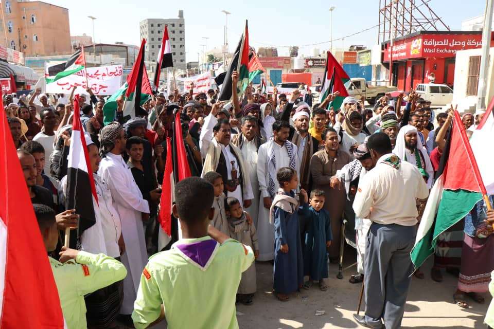 شهدت محافظة المهرة عصر يوم امس الجمعة، تظاهرات حاشدة شارك فيها الالاف من المتظاهرين دعما للقضية الفلسطينية.