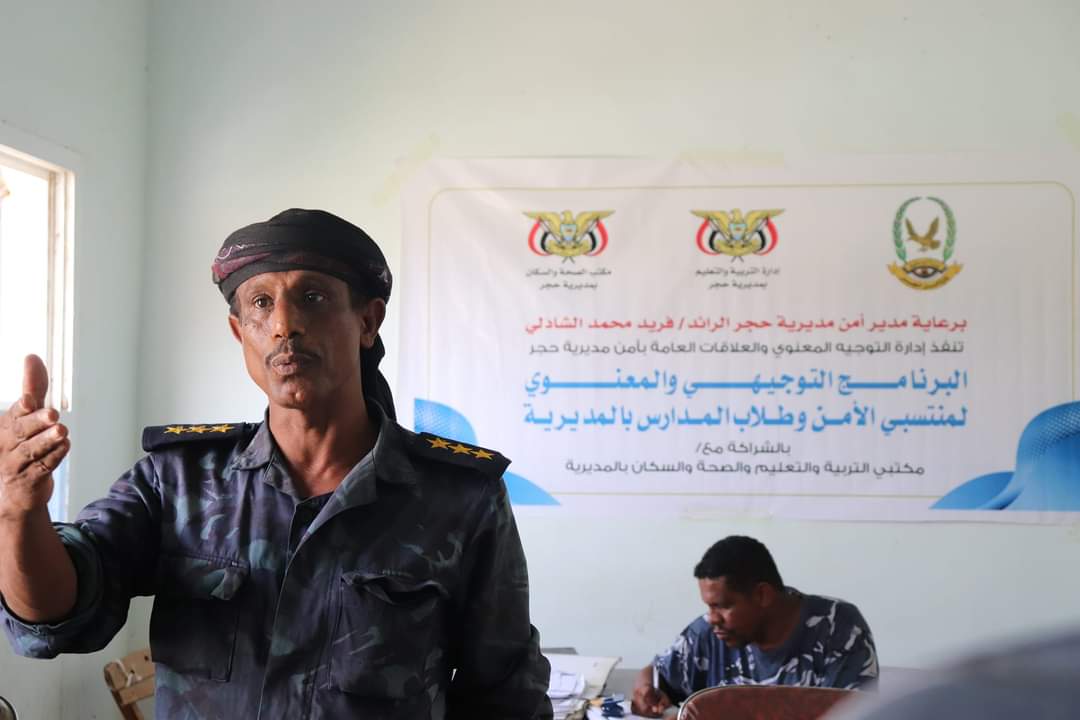 الجدير بالذكر أنه تم تدشين البرنامج التوعوي والتوجيهي لطلاب المدارس ومنتسبي الأمن الشهر الماضي بحضور قيادة السلطة المحلية بمديرية