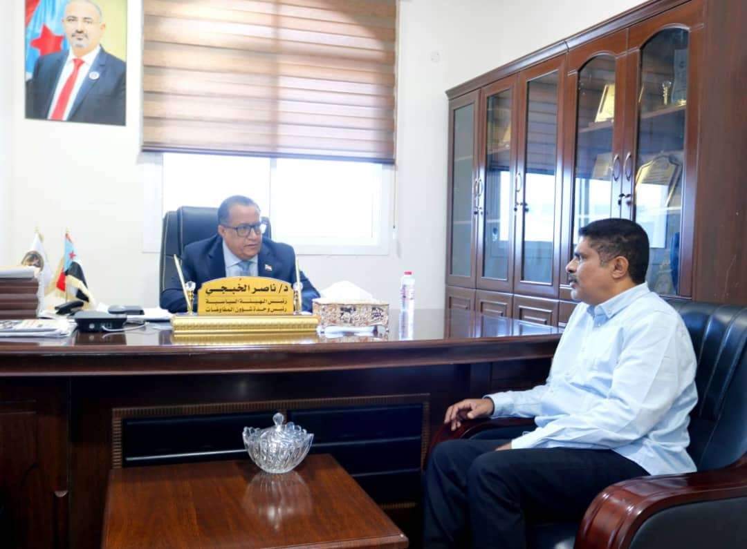 التقى الدكتور ناصر الخُبجي رئيس الهيئة السياسية، رئيس وحدة شؤون المفاوضات في المجلس الانتقالي الجنوبي، اليوم الأحد بالعاصمة عدن، بالعميد سعيد المحمدي، رئيس الهيئة التنفيذية للقيادة المحلية للمجلس الانتقالي بمحافظة حضرموت.