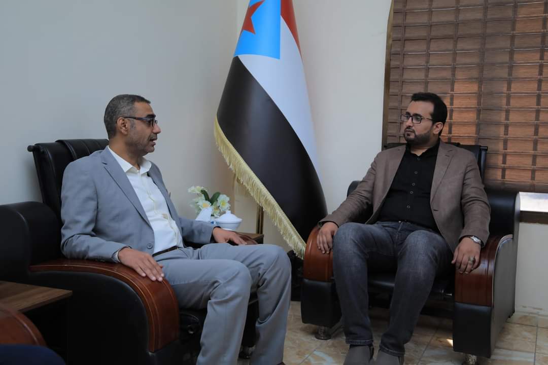 التقى الأستاذ سالم ثابت العولقي رئيس الهيئة الوطنية للإعلام الجنوبي المتحدث الرسمي باسم المجلس الانتقالي الجنوبي اليوم الاحد في مكتبه بمقر الهيئة في العاصمة عدن الأستاذ محمد عبدالملك الزبيدي رئيس الهيئة التنفيذية لمساعدة لشؤون الوادي والصحراء.