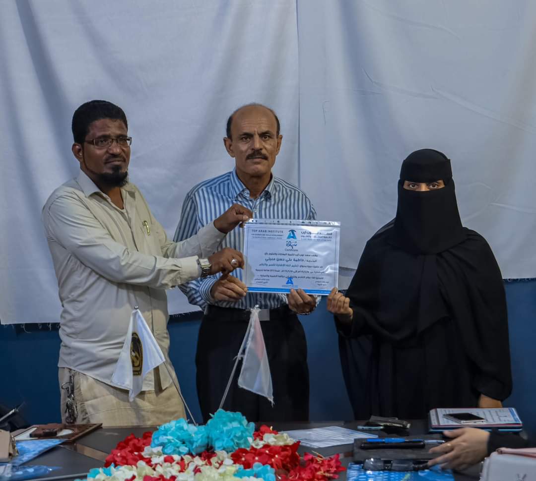 وفي ختام الدورة التدريبية تم توزيع شهادات مشاركة للمتدربات المستفيدات من الدورة والبالغ عددهن 28 مشاركة، كما قامت الهيئة التنفيذية لمنسقية انتقالي جامعة حضرموت بتكريم الأستاذ نبيل باعوضان تقديراً لجهوده المبذولة في توصيل المعلومة وتطبيق ما تطرق لتدريبهم عليه.
