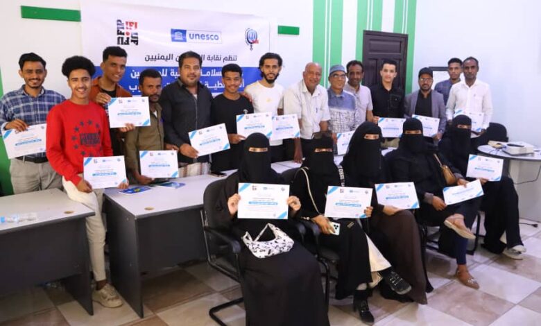 اختتمت اليوم بالمكلا أعمال الدورة التدريبية حول السلامة المهنية للصحفيين أثناء تغطية الصراعات والحروب ، التي نظمتها نقابة الصحفيين اليمنيين بالتعاون مع الاتحاد الدولي للصحفيين ومنظمة اليونسكو بمشاركة عشرين متدربًا ومتدربة يمثلون مختلف الوسائل الإعلامية .