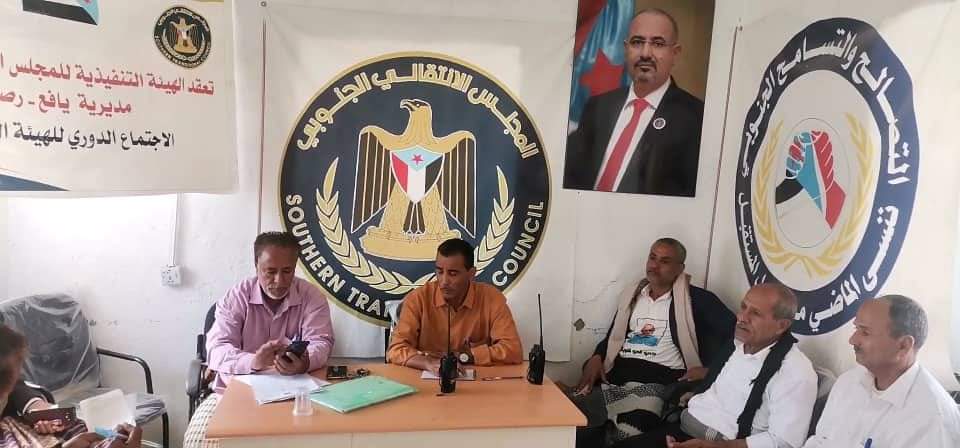 عقدت الهيئة التنفيذية للقيادة المحلية للمجلس الانتقالي الجنوبي في مديرية رصد يافع بمحافظة أبين، اليوم الأربعاء، اجتماعها الدوري لشهر يناير، برئاسة الدكتور علي عبدالرب طالب، نائب رئيس الهيئة.