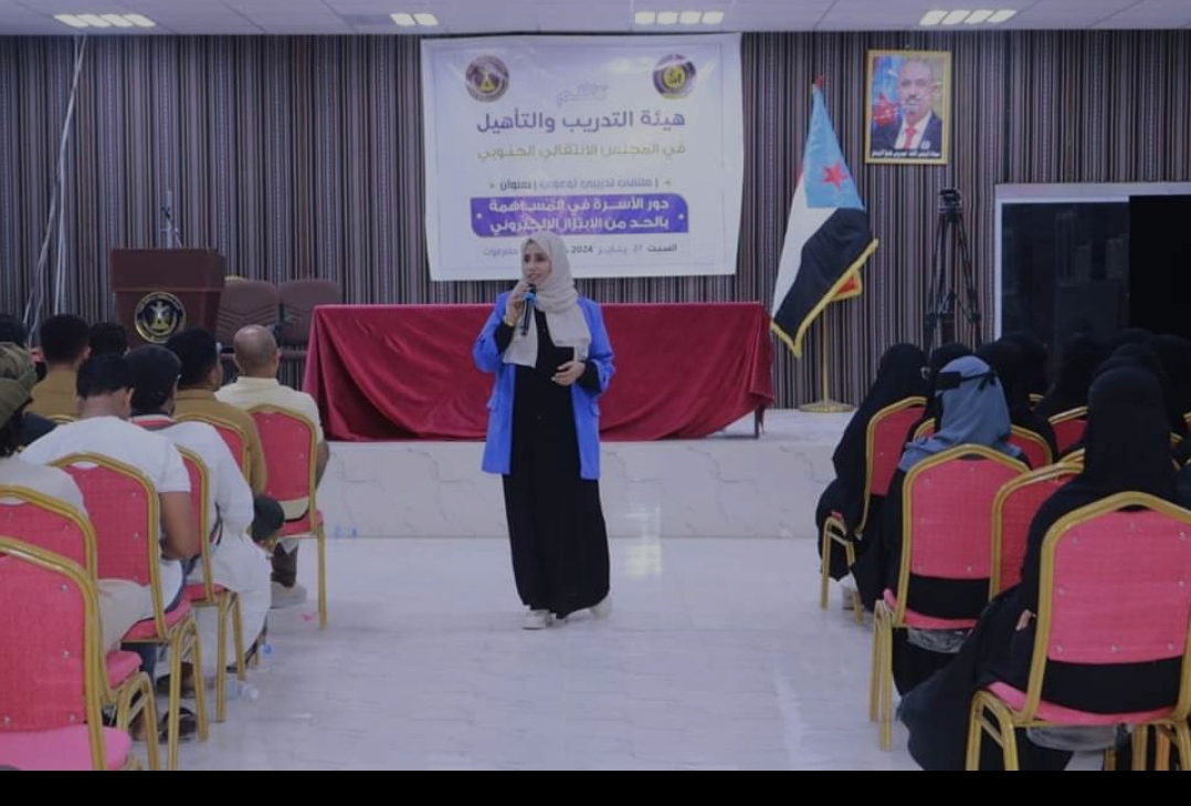 نظمت هيئة التدريب والتأهيل المساعدة لهيئة رئاسة المجلس الانتقالي الجنوبي، بالمكلا مساء اليوم السبت، ملتقى تدريبيا توعويا تحت عنوان” دور الأسرة في الحد من الابتزاز الإلكتروني“.