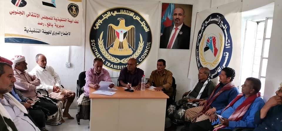 عقدت الهيئة التنفيذية للقيادة المحلية للمجلس الانتقالي الجنوبي في مديرية رصد يافع بمحافظة أبين، اجتماعها الدوري لشهر فبراير، صباح اليوم الإثنين، برئاسة أحمد عوض السعدي، رئيس الهيئة.