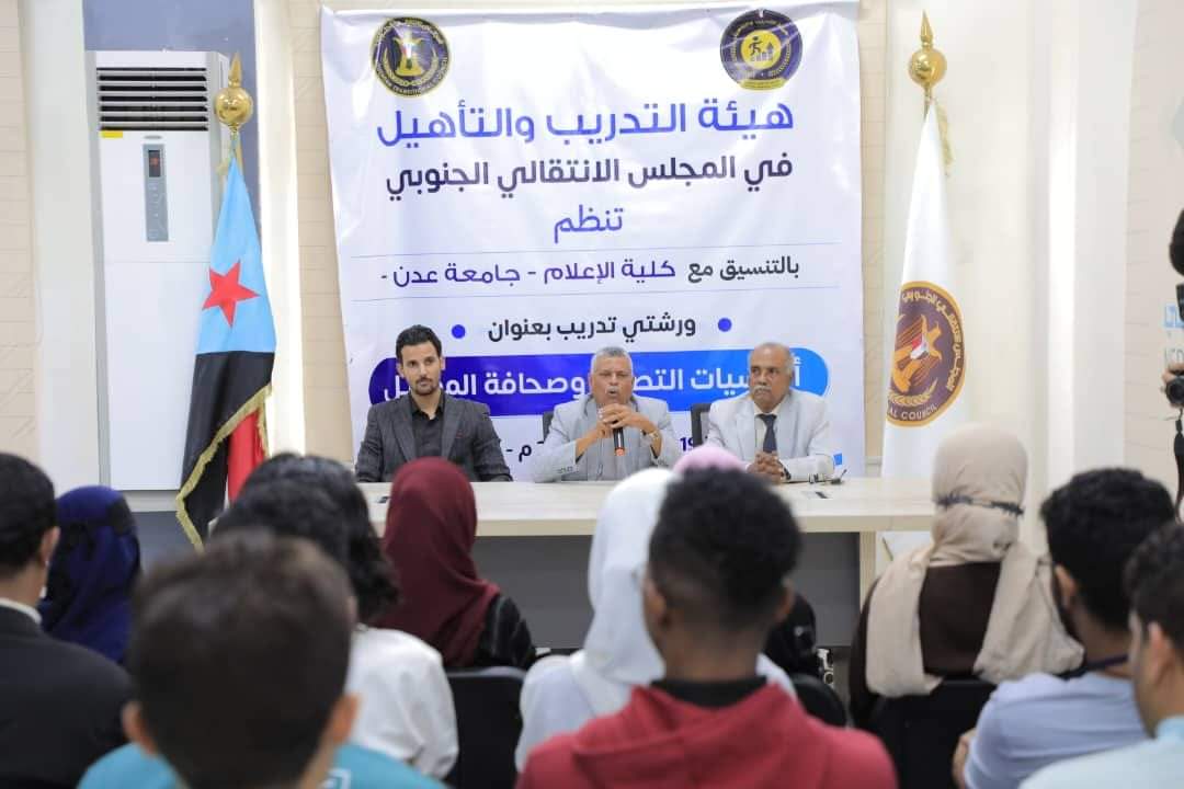 اختتمت هيئة التدريب والتأهيل المساعدة لهيئة رئاسة المجلس الانتقالي الجنوبي، اليوم الثلاثاء، في العاصمة عدن، ورشتي تدريب بعنوان ” أساسيات التصوير وصحافة الموبايل” بالتنسيق مع كلية الإعلام جامعة عدن، في إطار فعاليات أسبوع الطالب الجامعي الـ24 الذي تنظمه الكلية.
