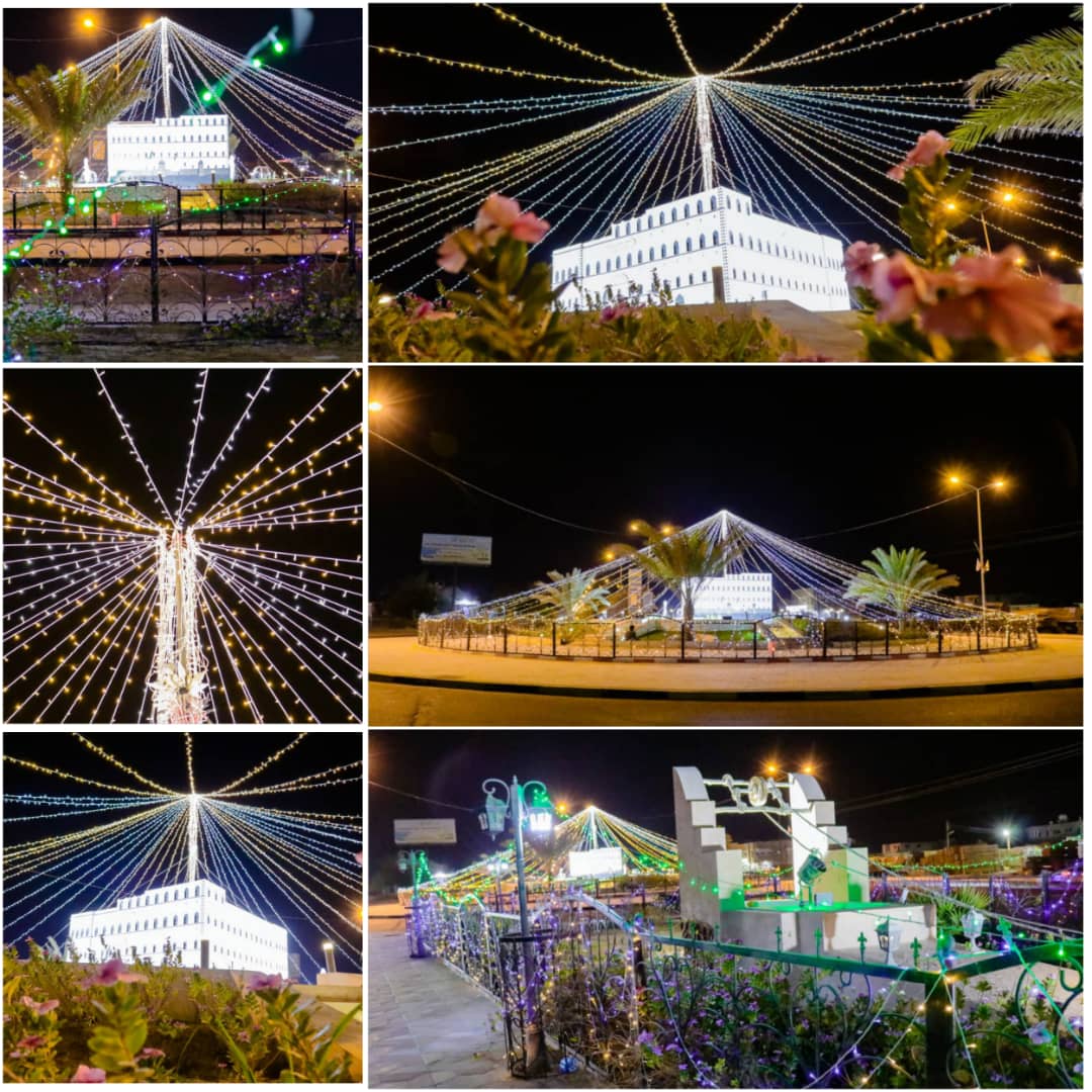 وتزينت جولة الستين بغيل باوزير بالأضواء الملونة أظهرت مجسم المدرسة الوسطى ومجسم السناوة، بتنسيق جميل وبطريقة مبتكرة حيث تم استخدام أنواع مختلفة من الإضاءات لإبراز جمال هذه المعالم وتفاصيلها الجميلة.