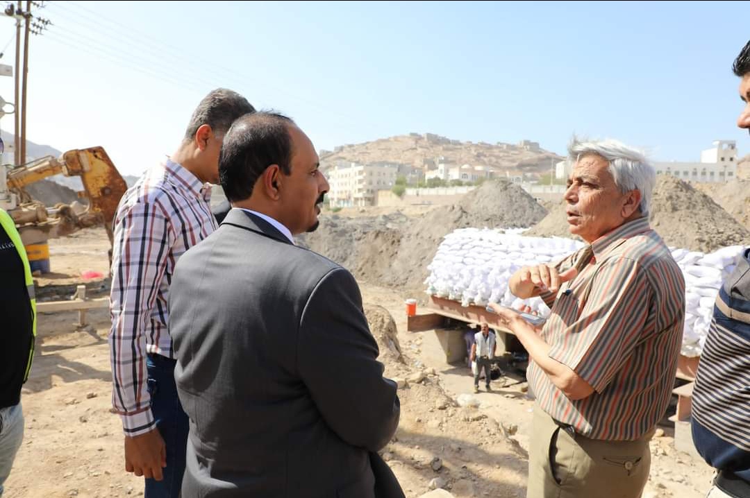 وتعرّف المحافظ ومعه الأمين العام للمجلس المحلي بالمحافظة صالح عبود العمقي، من المدير العام لمكتب وزارة الاشغال العامة والطرق المهندس صالح العمري، ومدير عام مجموعة العمودي للمقاولات العامة والتجارة المحدودة شفيق العمودي واستشاريي المشروع، الى أعمال الحفر الجارية للقناة المائية بطول 850م بمساحة اجمالية 47150م٢ وبعرض متفاوت مابين 60م الى 50م حيث تم تنفيذ  85% من أعمال الحفريات للقناة.