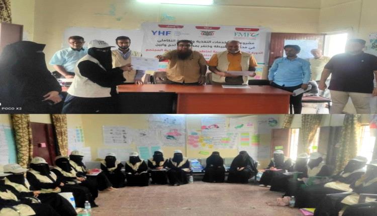 اختتمت المؤسسة الطبية الميدانية في محافظة أبين الدورة التدريبية لمتطوعات صحة وتغذية المجتمع، برعاية مكتب الصحة العامة والسكان وتمويل صندوق اليمن الإنساني. ضمن مشروع توفير خدمات التغذية والحماية التكاملية في مديرية خنفر بمحافظة أبين.