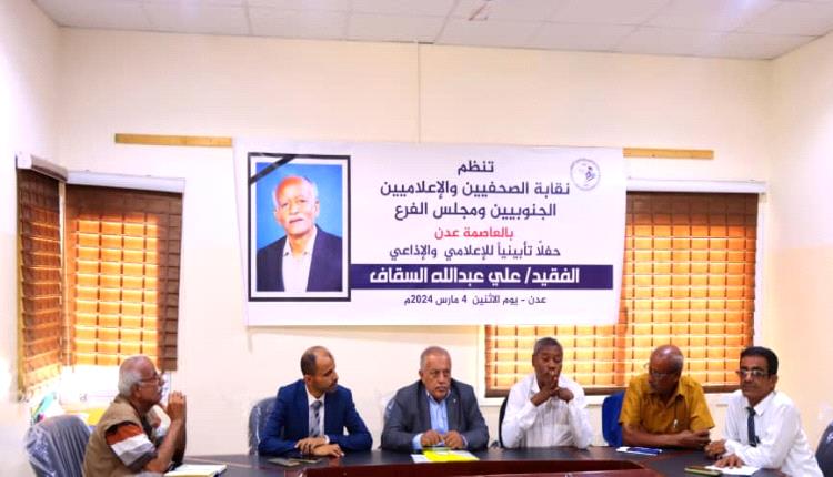 أقامت نقابة الصحفيين والاعلاميين الجنوبيين اليوم الاثنين حفلا تأبينيا للفقيد الاعلامي علي السقاف.