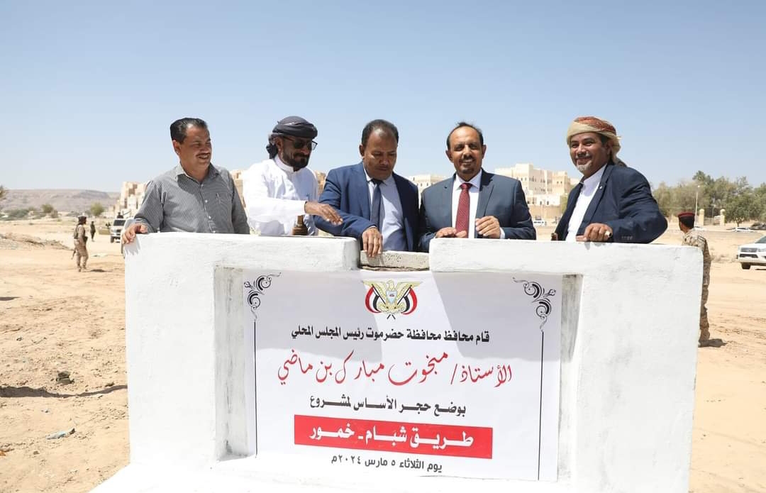 ووضع محافظ حضرموت بمدينة شبام حجر الاساس لمشروع طريق “شبام – خمور” بطول 12 كيلومتر بتمويل من السلطة المحلية بالمحافظة، ويحتل المشروع أهمية بالغة لأبناء المديرية والمديريات المجاورة حيث سينهي معاناتهم بإيجاد
