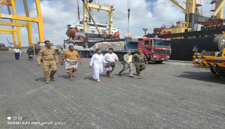 وعقب تفقد العمل على تفريغ الباخرتين اميثيست وراكان 5 الراسيتين على رصيف الميناء والمحملتان قرابة الـ16 الف طن من مادة الأرز ، عقد سالم لقاءاً مع مدير أمن ميناء المعلا العقيد / محسن السروري لمناقشة كافة القضايا المتعلقة بعمل الهيئة في الميناء