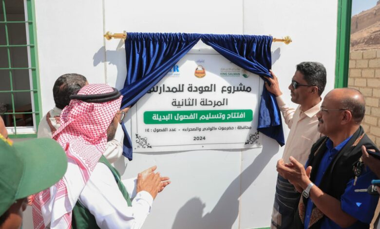 بتمويل سلمان للإغاثة وتنفيذ ائتلاف الخير افتتاح وتسليم الفصول البديلة الجاهزة ضمن مشروع العودة للمدراس المرحلة الثانية بمحافظة حضرموت