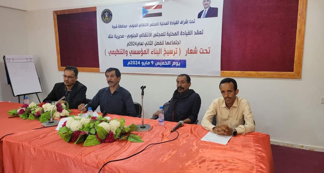 تحت إشراف القيادة المحلية للمجلس الانتقالي الجنوبي محافظة شبوة وتحت شعار ( ترسيخ البناء المؤسسي والتنظيمي) عقدت القيادة المحلية بمديرية عتق صباح اليوم الخميس اجتماعا موسعا لأعضاء القيادة المحلية بالمديرية وذلك لتفعيل العمل السياسي والتنظيمي والمجتمعي بالمديرية .