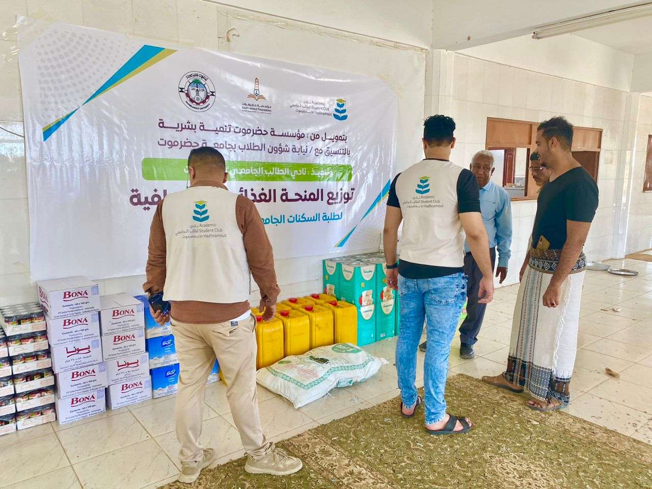 نادي الطالب الجامعي يوزع المنح الغذائية الإسعافية لطلبة السكنات الجامعية بجامعة حضرموت