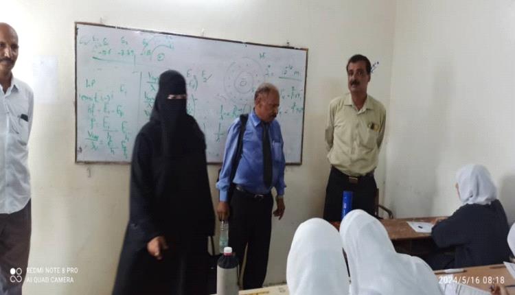 واطلع من مدير المدرسة الاستاذ/ تمام عبدالله الحمادي على سير الامتحانات في مادة اللغة العربية بجميع المستويات. ومستوى الاعداد والترتيبات التنظيمية لنجاح العملية الامتحانية.وتهيئة الاجواء المناسبة لاداء الطلاب والطالبات الاجابة على اسئلة الامتحانات وبما يضمن سلامة سير العملية الامتحانية والحد من ظاهرة الغش لينال كل طالب وطالبة حقه في المحصلة النهائية.