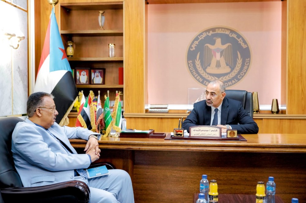 التقى الرئيس القائد عيدروس قاسم الزُبيدي رئيس المجلس الانتقالي الجنوبي، نائب رئيس مجلس القيادة الرئاسي، بمكتبه في العاصمة عدن اليوم الأربعاء، رئيس مصلحة الجمارك عبدالحكيم القباطي.